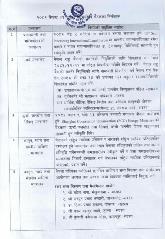 काठमाडौं । सञ्चारमन्त्री पृथ्वीसुब्बा गुरुङले मन्त्रिपरिषद्का २ वटा बैठकका निर्णय सार्वजनिक गरेका छ्न् । यही वैशाख २५ को ८ र ३१ गते गरिएका २२ निर्णय आज नियमित पत्रकार सम्मेलनमार्फत् सार्वजनिक गरिएको हो ।