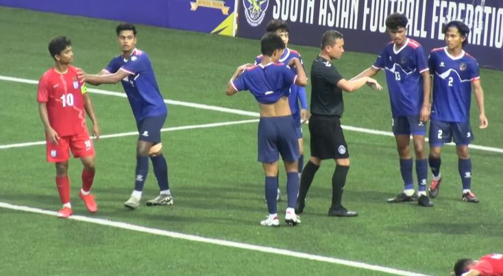 खेलको पहिलो हाफ गोलरहित बराबरी सकिएको थियो । बङ्गलादेशले दोस्रो हाफको १० मिनेटभित्र दुई गोल गर्याे । बङ्गलादेशले खेलको ७३औ र ८१औं मिनेटमा गोल गरेको हो । नेपालले खेलको ८७औं मिनेटमा एक गोल फर्कायो ।