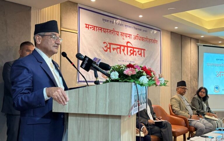 राष्ट्रिय सूचना आयोगले आज यहाँ आयोजना गरेको मन्त्रालयस्तरीय सूचना अधिकारीहरूसँग अन्तक्र्रिया कार्यक्रमलाई उनले संविधानमा सूचनाको हकलाई मौलिक हकका रुपमा राखिएको बताए ।