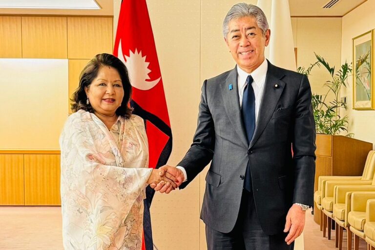 काठमाडौं । परराष्ट्रमन्त्री डा. आरजु राणा देउवा र जापानका विदेशमन्त्री इवाया ताकेसीबिच बिहीबार टोकियोमा द्विपक्षीय भेटवार्ता भएको छ । जापान भ्रमणमा रहेकी मन्त्री डा. राणा र जापानी विदेशमन्त्री ताकेसीबिच आज टोकियोस्थित विदेश मन्त्रालयमा भेटवार्ता भएको हो ।