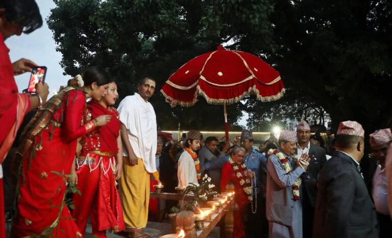 पूर्वराजा शाह, पूर्वरानी कोमल, पूर्वअधिराजकुमारी प्रेरणा र पूर्व नवयुवराज हृदयेन्द्र शाहले शनिबार साँझ नारायणहिटी दरबार परिसरमा रहेको नारायणधाम मन्दिरमा पूजाआजा गरेका हुन् ।