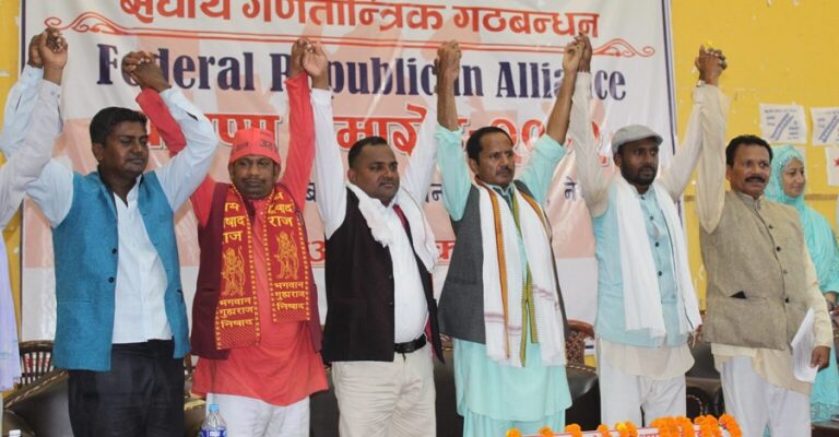 जनकपुरधाम । साना पाँच राजनीतिक दलले ‘सङ्घीय गणतान्त्रिक गठबन्धन’ घोषणा गरेका छन् । जनकपुरमा एक समारोहका बिच गठबन्धनको घोषणा गरिएको हो ।