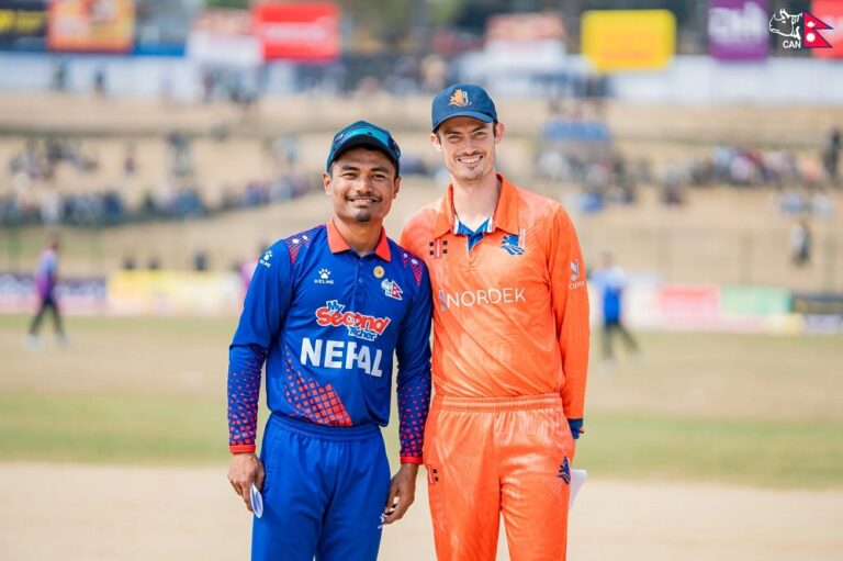 लिग-२ अन्तर्गत नेपाल, घरेलु टोली स्कटल्याण्ड र नेदरल्यान्ड्स सम्मिलित त्रिदेशीय एकदिवसीय शृङ्खला भइरहेको हो ।