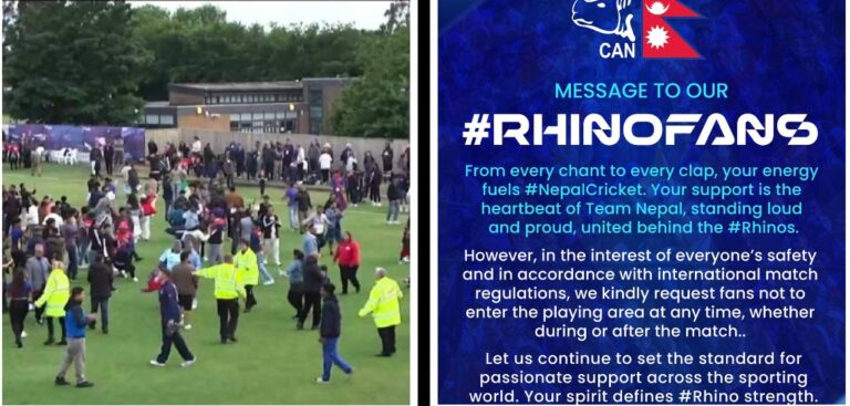 काठमाडौं । नेपाल क्रिकेट संघ (क्यान) ले नेदरल्यान्ड्सविरुद्धको खेलको पूर्वसन्ध्यामा दर्शकहरूलाई खेलको समयमा वा पछि पनि मैदानभित्र प्रवेश नगर्न आग्रह गरेको छ।