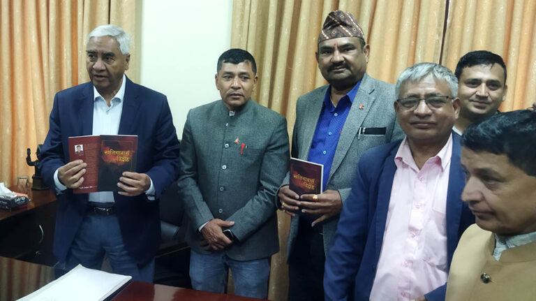 काठमाडौं । नेपाली कांग्रेसका सभापति शेरबहादुर देउवाले लेखक एवं साहित्यकार श्रीराम श्रेष्ठद्वारा लिखित पुस्तक ‘खनियाबास विद्रोह’ लोकार्पण गरेका छन् ।बुधबार नेपाली कांग्रेस केन्द्रीय कार्यालयमा आयोजित एक कार्यक्रमका बीच सभापति देउवाले उक्त पुस्तक सार्वजनिक गरेका हुन् ।