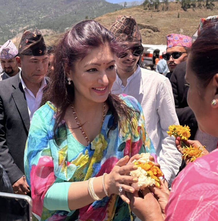 काठमाडौँ । हिमानी शाह र हृदयेन्द्र शाह जुम्ला पुगेका छन् ।शनिबार बिहान जुम्ला पुगेका हिमानी र हृदयन्द्रलाई स्थानीयले स्वागत गरेका थिए । हिमानी र हृदयेन्द्रसँग राप्रपा प्रवक्ता ज्ञानेन्द्र शाही पनि जुम्ला पुगेका छन् । हिमानी रहृदयेन्द्र जुम्लामा हिमानी ट्रष्टले निर्माण गरेको बर्थिङ सेन्टरको उद्घाटन गरेका थिए ।