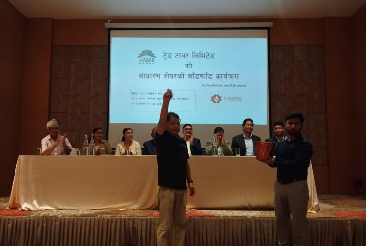 काठमाडौं । ट्रेड टावर लिमिटेडले सर्वसाधारणका लागि निष्कासन गरेको प्रारम्भिक सार्वजनिक निष्कासन (IPO) को बाँडफाँट सम्पन्न भएको छ। कम्पनीले २०८२ जेठ १४ गतेदेखि २० गतेसम्म सार्वजनिक निष्कासनमार्फत रु। ३२.९६ करोड बराबरका ३२,९६,५०५.१९ कित्ता शेयर सार्वजनिक गरेको थियो।