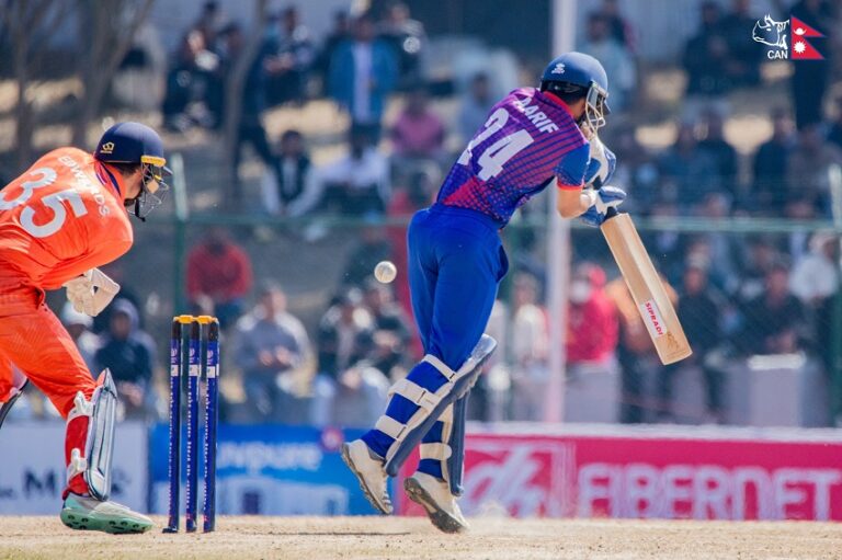 त्यस्तै विक्रमजित सिंहले ३० रन बनाए । उनले २९ बलमा दुई छक्काको सहयोगमा ३० रन बनाएका हुन् । सकिब जुल्फिकरले २५, माइकल लेभिट २० तथा म्याक्स ओ डाउडले १९ रन बनाए । नेपालका लागि सन्दीप लामिछानेले तीन विकेट लिए भने नन्दन यादवले दुई तथा कुशल भूर्तेल र ललित राजवंशीले समान एक÷एक विकेट हात पारे । यस सिरिजअन्तर्गत हिजो भएको पहिलो खेलमा भने नेदरल्यान्ड्स स्कटल्याण्डसँग ३९ रनले पराजित भएको थियो ।