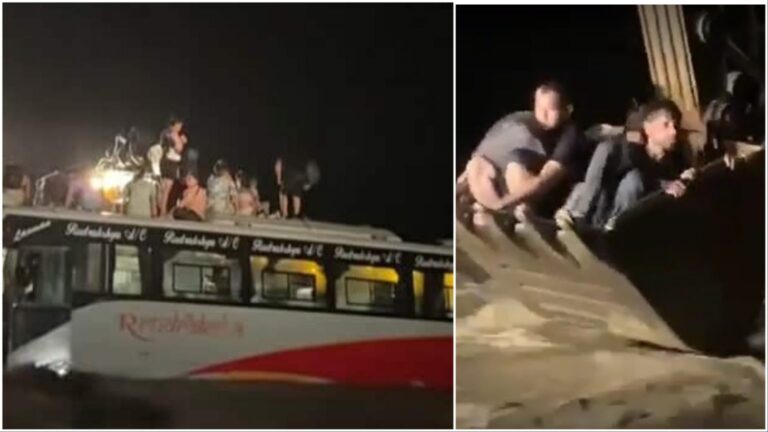 “नयाँ डाइभर्सनबाट आउँदै गर्दा बाढीले बस बगाएको हो”, प्रहरी निरीक्षक तिमिल्सेनाले भने– “तत्काल एक्साभेटर लगेर सबै यात्रुको सकुशल उद्धार गर्न सफल भयौँ ।”