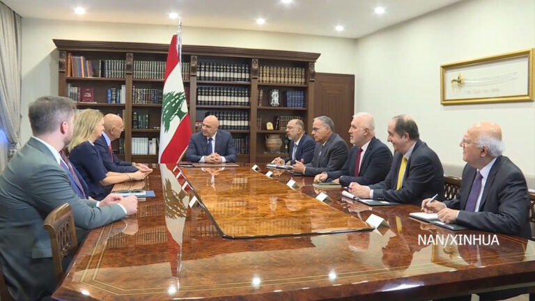 । लेबनानी नेताहरूले टर्कीका लागि अमेरिकी राजदुत र सिरियाका लागि विशेष दुत थोमस ब्यारेकसँग भेट गरेका छन् । ब्यारेकसँगको कुराकानीको क्रममा लेबनानी राष्ट्रपति जोसेफ आउनले संयुक्त राज्य अमेरिकालाई लेबनानको पुनर्लाभलाई समर्थन गर्न, विशेष गरी दक्षिणमा स्थिरता सुनिश्चित गर्न आह्वान गरे ।