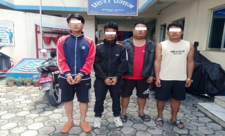 काठमाडौं । बहिनीको जन्मदिन मनाउने भन्दै बोलाएर साथीको हत्या गरेको आरोपमा चार जना पक्राउ परेका छन् । बाराको निजगढ नगरपालिका– ८ का ३२ वर्षीय कृष्ण लामाको हत्या गरेको अभियोगमा प्रहरीले चार जनालाई पक्राउ गरेको हो ।