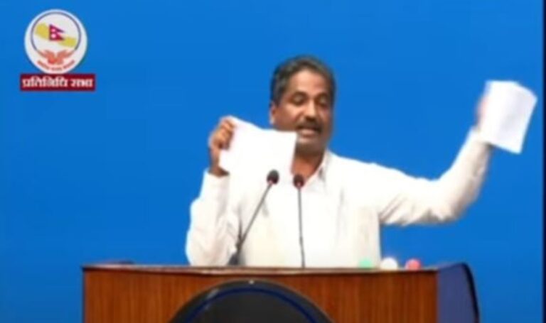 उनले सो विधेयक गरिब, निमुखाको पक्षमा नभएको भन्दै प्रतिनिधिसभाको रोष्ट्रमबाटै च्यातेका छन् । र प्रतिनिधिसभाको बैठक समेत बहिष्कार गरेका छन् ।