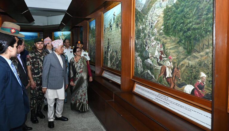 काठमाडौं । राष्ट्रपति रामचन्द्र पौडेलले छाउनीस्थित राष्ट्रिय सङ्ग्रहालय र नेपाली सेनाको सैनिक सङ्ग्रहालयको आज अवलोकन गरेका छन् । राष्ट्रपति पौडेल प्रथम महिला सबिता पौडेलसहित छाउनी सङ्ग्रहालय अवलोकन गर्न गएका हुन् ।