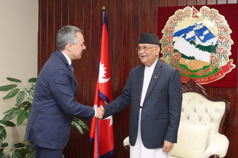 काठमाडौं । प्रधानमन्त्री केपी शर्मा ओलीसँग स्वीटजरल्याण्डका सङ्घीय विदेशमन्त्री इग्नाजिओ डानियल जिओभान्नी क्यासिसले शिष्टाचार भेटवार्ता गरेका छन् ।