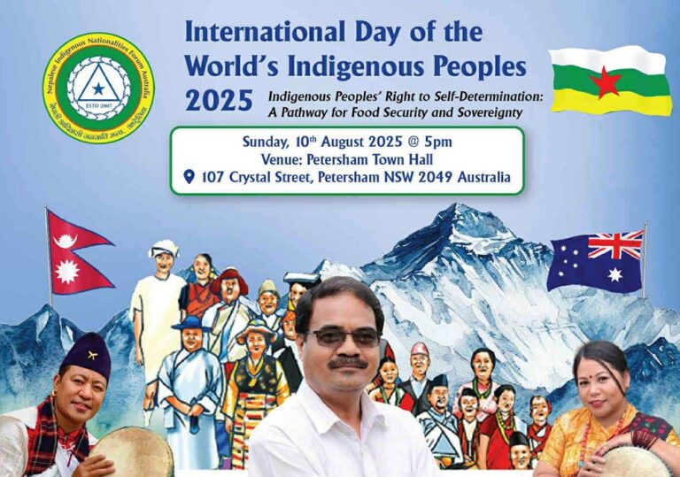 पिटर्सह्याम । नेपाली आदिवासी जनजाति मञ्च अष्ट्रेलियाले यस वर्ष पनि भव्यताका साथ अन्तराष्ट्रिय आदिवासी दिवस मनाउने भएको छ। अष्ट्रेलियामा रहेका नेपाली समुदायबीच सहकार्य, ऐक्यबद्धता र सचेतना बढाउने उद्देश्यसहित यो कार्यक्रम आयोजना गर्न लागेको नेपाली आदिवासी जनजाति मञ्च अष्ट्रेलिया (निन्फा) का अध्यक्ष लक्ष्मण गुरुङले जानकारी दिए ।