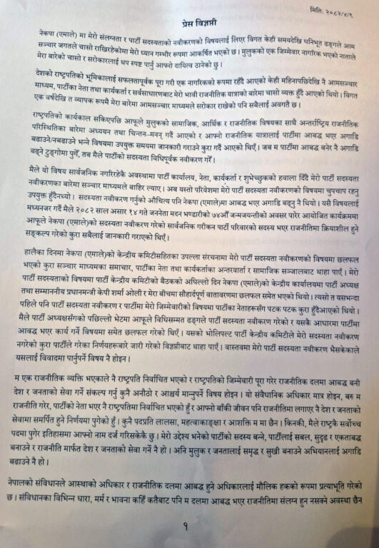 पत्रकार सम्मेलन भनिए पनि तयार पारिएको विज्ञप्ति उनले पढेर सुनाइन् । त्यसपछि दुईजना पत्रकारको प्रश्नको जवाफ फर्काएपछि उनी उठेर हिडेकी थिइन् ।