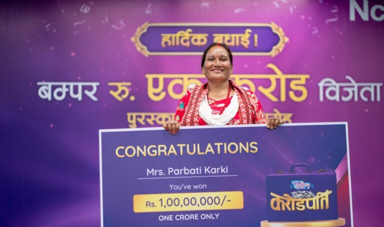 काठमाडौं । एनसेलले गरेको लक्की ड्र मा धादिङ, गंगाजमुना गाउँपालिका–६ बांगेपिपल, बसेराकी पार्वती कार्की करोडपति बनेकी छन् । उनले असार १ देखि ३२ गतेसम्म सञ्चालन भएको एनसेलको ‘सधैँ करोडपति’ योजनामा एक करोड रुपैयाँको बम्पर नगद पुरस्कार जितेकी हुन् ।