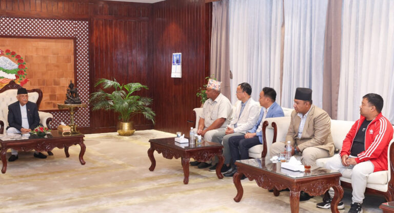 काठमाडौं । प्रधानमन्त्री केपी शर्मा ओलीले भक्तपुरको सूर्यविनायकमा नयाँ रंगशाला बनाउने विषयमा आज सूर्यविनायक नगरपालिका, राष्ट्रिय खेलकुद परिषद् (राखेप) र अखिल नेपाल फुटबल संघ (एन्फा) का नेतृत्वसँग छलफल गरेका छन् ।