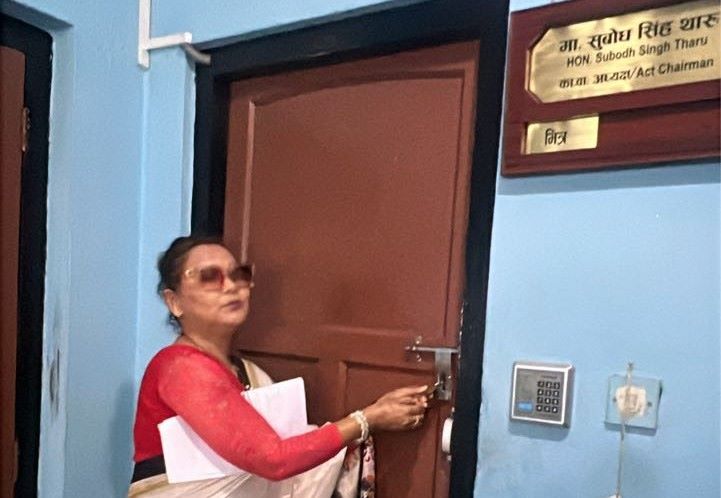 काठमाडौं । थारु आयोगका कार्यवाहक अध्यक्ष सुवोधसिंह थारुको कार्यकक्षमा अमेरिकी नागरिक शान्ति मोदीले तालाबन्दी गरेकी छन् । एक साताको बिदा लिएर मोदी एक महिना अमेरिका बसेर फर्किएकी थिइन् । उनी कार्यालयमा नआएको दिनको हाजिर गर्न नपाएपछि कार्यकक्षमा तालाबन्दी गरेको सुवोधसिंह थारुले बताए ।