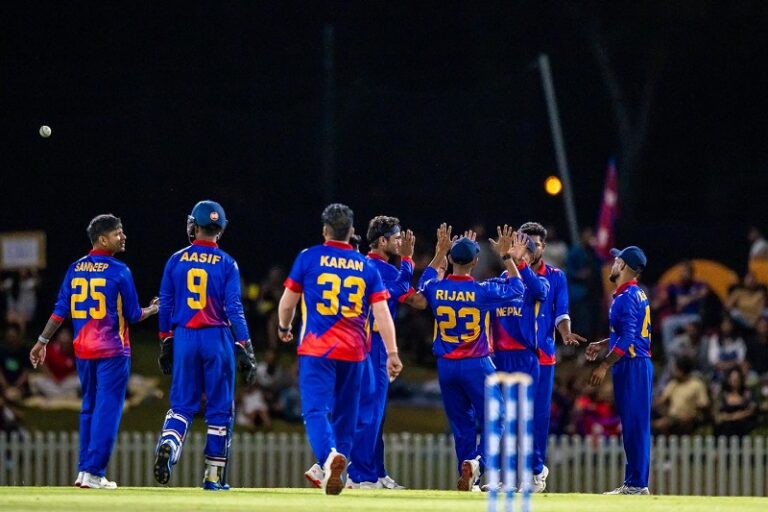 नेपालका आशिफ शेखले ५३ रनसहित अर्धशतक बनाए । यस्तै कप्तान रोहितकुमार पौडेलले ३३ र कुशल भुर्तेलले २५ रन बनाए । मेलबर्नका डग वारेन र अस्टिन एन्लेजाकले समान दुई तथा आर्यन शर्मा र क्रिस होवे समान एक विकेट लिए ।
