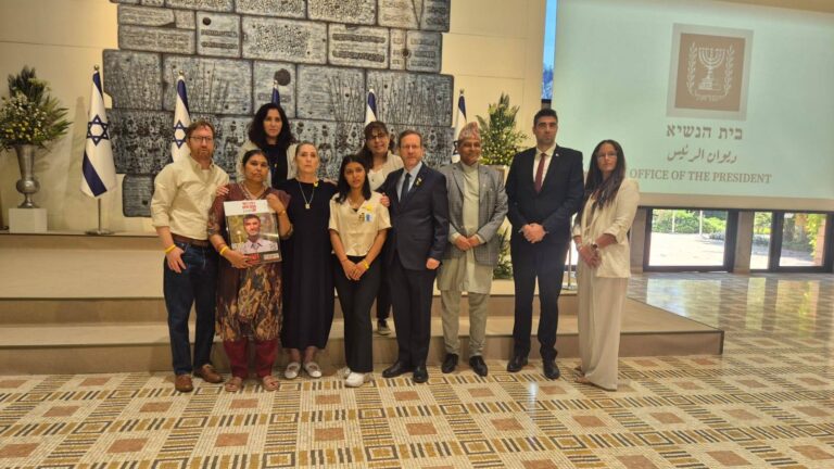 काठमाडौ । हमासको अपहरणमा परेका नेपाली विद्यार्थी विपिन जोशीको खोजीका लागि नेपालबाट इजरायल पुगेका आमा पदमा जोशी र बहिनी पुष्पा जोशीले आईबार त्यहाँ राष्ट्रपति आइज्याक हर्जगसँग भेट गरेका न । नेपाली राजदूत धनप्रसाद पण्डितको साथमा पुगेकी विपिनकी आमा र बहिनीले राष्ट्रपतिलाई भेटका हुन् ।