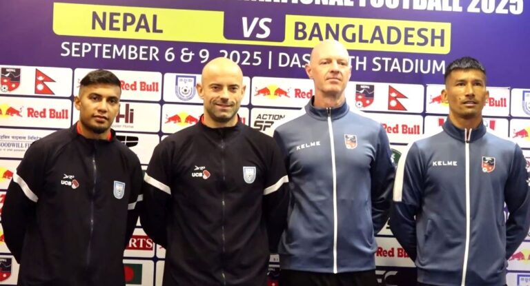 काठमाडौं । नेपाल र बंगलादेशबीच आज (शनिबार) पहिलो मैत्रीपूर्ण फुटबल खेल हुँदैछ । काठमाडौंस्थित दशरथ रंगशालामा हुने खेल आज साँझ साँढे ५ बजेदेखि शुरु हुनेछ । फिफा विन्डोअन्तर्गत हुन लागेको दुई मैत्रीपूर्ण खेल दुवै टोलीको एएफसी एसियन कप छनोटको तयारीका लागि महत्वपूर्ण मानिएको छ ।