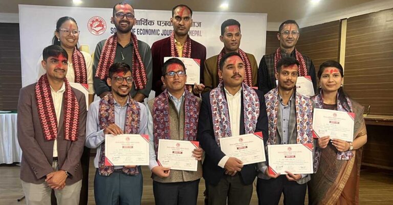 काठमाडौं। नेपाल आर्थिक पत्रकार समाज (सेजन) को अध्यक्षमा सेतोपाटी डटकमका भागवत भट्टराई निर्वाचित भएका छन्। आज यहाँ सम्पन्न सेजनको २७औँ साधारणसभा तथा अधिवेशनबाट भट्टराई ११० मतसहित निर्वाचित भएका हुन् । उनका प्रतिस्पर्धी विश्वास रेग्मीले ९२ र आशा थपलियाले ४१ मत प्राप्त गरेका थिए ।