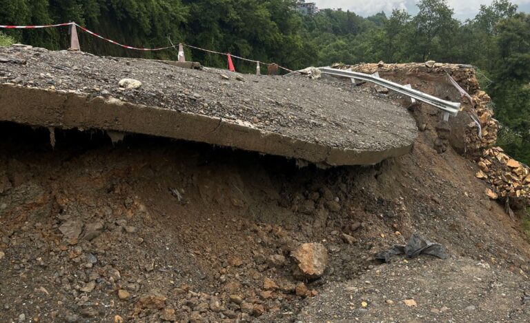 अविरल वर्षापछि भासियो निर्माणाधीन सडक