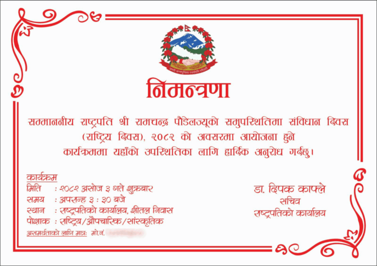 उपस्थितिका लागि राष्ट्रपति पौडेलले विशिष्ट व्यक्तिहरूलाई आमन्त्रण गरेका छन् । राष्ट्रपति पौडेलले यही असोज ३ गते शुक्रबार अपराह्न साढे ३ बजे कार्यक्रम राखेका हुन् ।