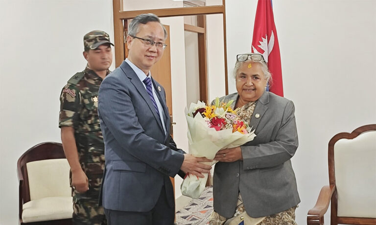 काठमाडौं । नेपालका निम्ति चिनियाँ राजदूत छन सोङले प्रधानमन्त्री सुशीला कार्कीसँग शिष्टाचार भेटवार्ता गरेका छन् । बिहीबार सिंहदरबारस्थित प्रधानमन्त्री तथा मन्त्रिपरिषद्को कार्यालयमा पुगेर उनले भेट गरेका हुन् ।