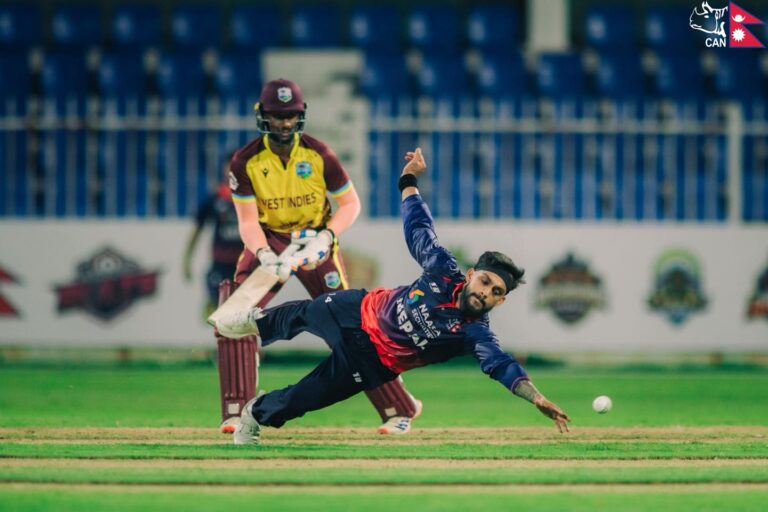 गएरातिको खेलमा नेपालले दिएको एक सय ७४ रनको लक्ष्य पछ्याएको वेस्ट इन्डिज ८३ रनमा अलआउट भयो । वेस्ट इन्डिज १७ दशमलव एक ओभरमा सबै विकेट गुमाउदै ८३ रनमा समेटियो ।