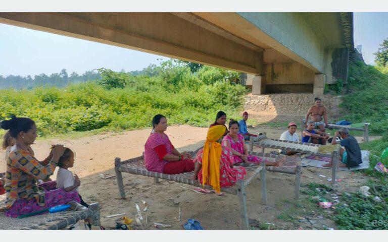 वनहरा नदी किनारमा टालटुल गरेर बनाइएका झुपडीमाथि राखिएका त्रिपाल दातृ निकायले उपलब्ध गराएका हुन् । तर, त्रिपालभित्र गर्मी असह्य हुने भएकाले धेरै परिवार राति पुलमुनि सुत्न बाध्य छन् । रञ्जित रावत भन्छन्, ‘कोही डोरीको खटिया राखेर सुत्छौं, कोही भुइँमै बोरी ओछ्याएर, लामखुट्टेले रातभर टोकेर निन्द्रै पर्दैन, ओढ्ने–बिछ्याउने छैन, जसोतसो रात काट्छौं ।’