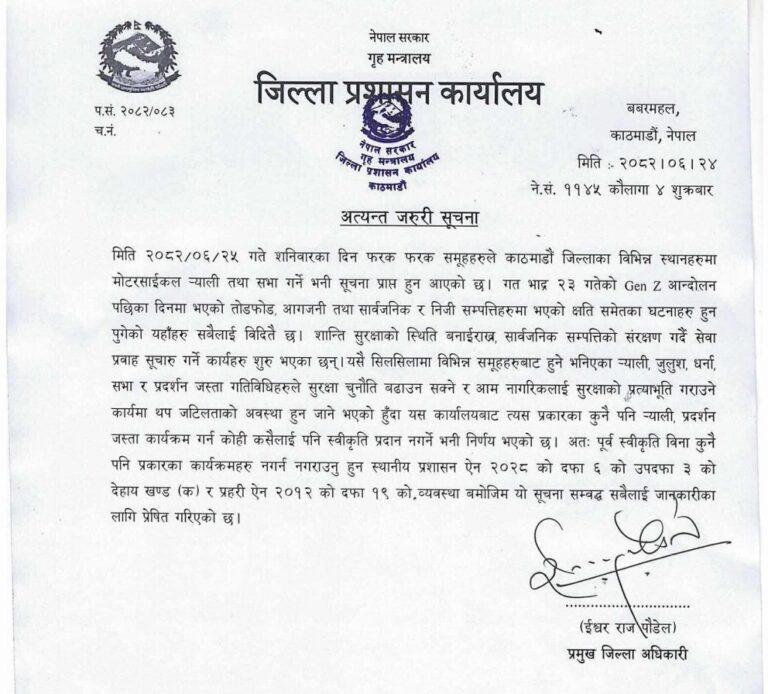 प्रशासनले त्यस प्रकारका कुनै पनि र्याली, प्रदर्शन जस्ता कार्यक्रम गर्न कोही कसैलाई पनि स्वीकृति प्रदान नगर्ने भनी निर्णय भएकाे जनाएकाे छ ।