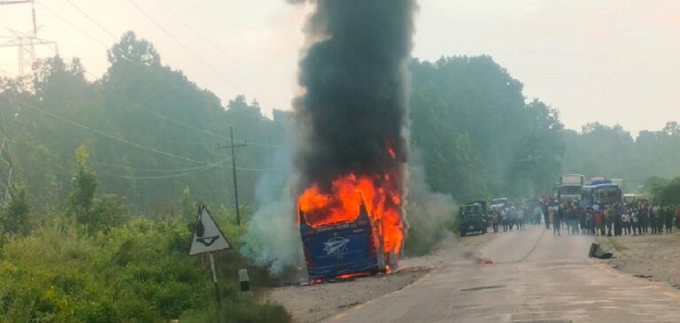 रौतहट । रौतहटको चन्द्रपुर नगरपालिका–४ पश्चिम लच्का नजिक बुधबार बिहान एक यात्रुवाहक बसमा आगलागी भएको छ ।