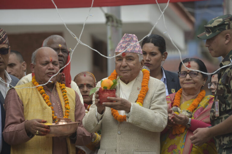 राष्ट्रपति पौडेलले पशुपति क्षेत्रस्थित गुह्येश्वरी मन्दिर अघि बागमती किनार गौरीघाटमा तयार गरिएको छठ पूजास्थलमा पुगेर छठी माताको पूजा अर्चना गर्नुभएको राष्ट्रपतिको स्वकीय सचिवालयले जनाएको छ ।