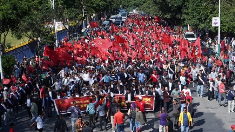 काठमाडौं । नेत्रविक्रम चन्द (विप्लव) नेतृत्वको नेकपाले काठमाडौंमा प्रदर्शन गरेको छ । सर्वपक्षीय अन्तरिम सरकारको माग गर्दै नेकपाले र्यालीसहित प्रदर्शन गरेको हो ।