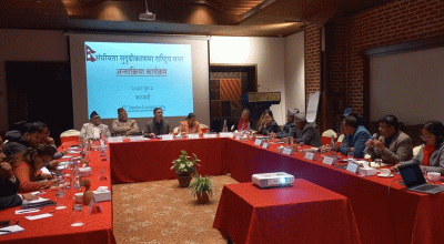 नेपाल कानुन समाजले आयोजना गरेको ‘आगामी प्रतिनिधि सभाको निर्वाचन: चुनौती र अवसर’ विषयक अन्तरक्रिया कार्यक्रममा बोल्दै नेता खरेलले निर्वाचनको मुख्य सरोकारवाला रहेका राजनीतिक दलका नेताहरूलाई समेत नभेट्ने अभिव्यक्ति दिने प्रधानमन्त्रीले निर्वाचन गराउनेमा आफूहरूलाई विश्वास नलागेको बताए ।