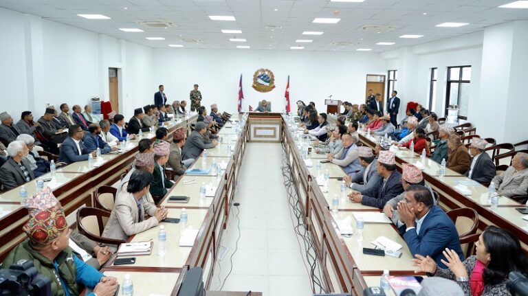 काठमाडौं । राजनीतिक दलका प्रतिनिधिहरूले चुनावका लागि उपयुक्त वातावरण बनाउन सरकारसँग आग्रह गरेका छन् । प्रधानमन्त्री सुशीला कार्कीले हिजो सिंहदरबारमा बोलाएकाे विभिन्न राजनीतिक दलको बैठकमा सहभागी दलका नेताहरूले चुनावका लागि उचित वातावरण बनाउन सरकारसँग आग्रह गरेका हुन् ।