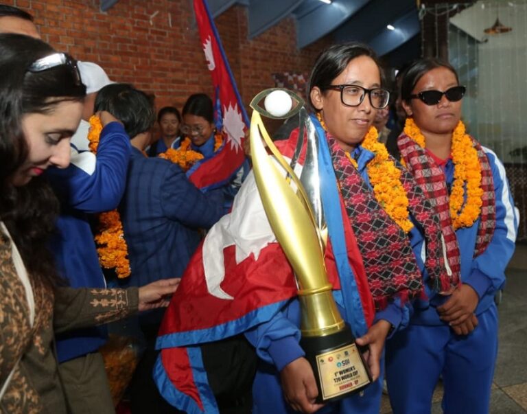 काठमाडौं । भारत र श्रीलङ्कामा संयुक्त रूपमा आयोजना भएको पहिलो संस्करणको दृष्टिविहीन महिला टी–२० विश्वकपमा उपविजेता बनेको नेपाली टोली स्वदेश फर्किएको छ ।