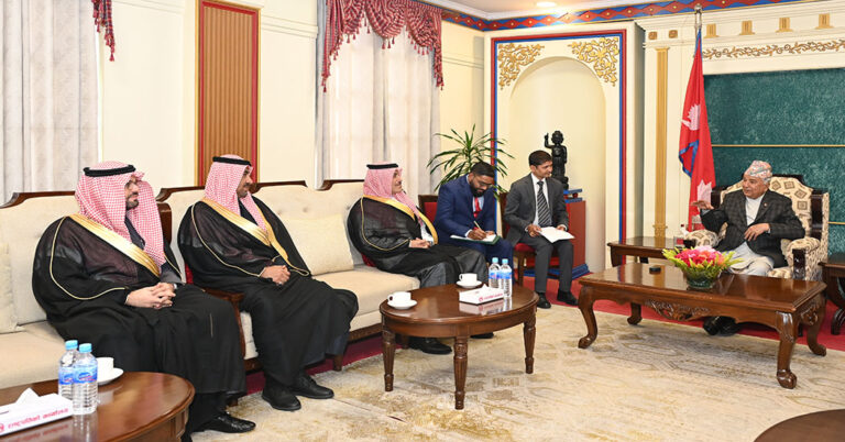 काठमाडौं । राष्ट्रपति रामचन्द्र पौडेलसमक्ष नेपालका लागि साउदी अरेबियाका राजदूत साद अबुहैमेदले शिष्टाचार बिदाइ भेट गरेका छन् ।