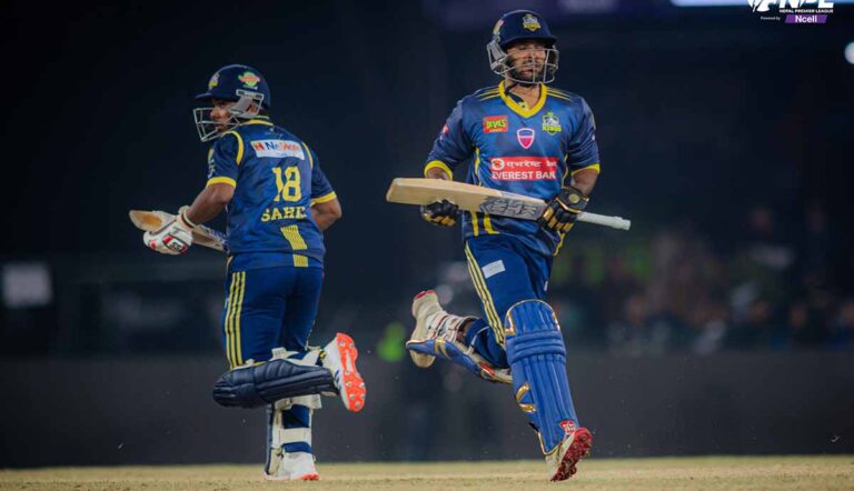 काठमाडौं । अन्तिम चार ओभरमा ६९ रन बनाएपछि नेपाल प्रिमियर लिग (एनपीएल)मा विराटनगर किंग्सले कर्णाली याक्सविरुद्ध तीन विकेटको रोमाञ्चक जित निकालेको छ ।