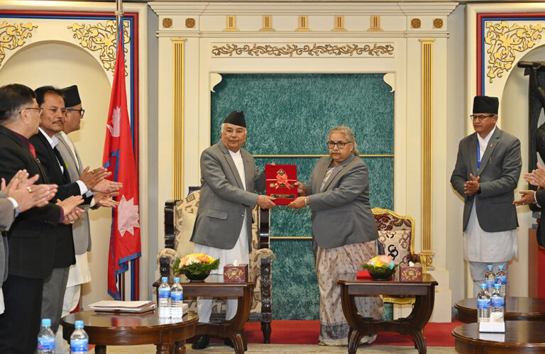 काठमाडौं । राष्ट्रपति रामचन्द्र पौडेलसमक्ष राष्ट्रिय सुरक्षा परिषद्को प्रतिवेदन पेस भएको छ ।