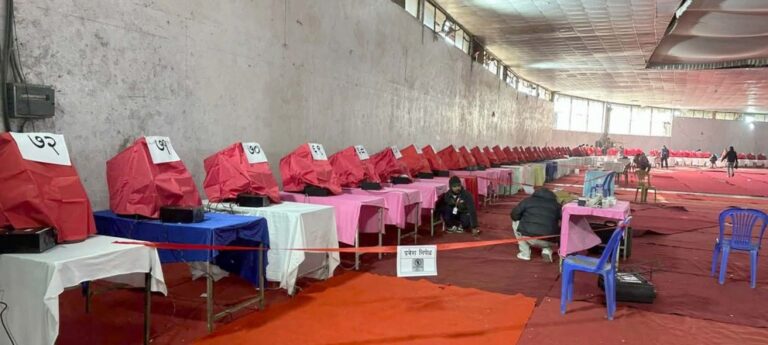मतदानका लागि भृकुटीमण्डपमा बनाइएको निर्वाचन केन्द्रमा विद्युतीय मेसिन जडान गरेर बुथ तयार गरिसकिएको छ ।
