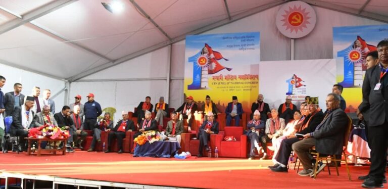 काठमाडौं । नेपाल कम्युनिष्ट पार्टी (एमाले) को ११ औँ राष्ट्रिय महाधिवेशनले समसामयिक विषयमा २४ बुँदे राजनीतिक प्रस्ताव पारित गरेको छ । महाधिवेशनको समापनसत्रमा प्रस्ताव लेखन समितिका संयोजक प्रदीपकुमार ज्ञवालीले प्रस्तुत गरेको सो प्रस्ताव पारित भएको हो ।