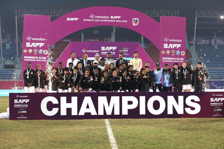 काठमाडौं । साफ महिला क्लब फुटबल च्याम्पियनसिपको उपाधि भारतको इस्ट बङ्गाल क्लबले जितेको छ । काठमाडौंको त्रिपुरेश्वरमा रहेको दशरथ रङ्गशालामा हिजो भएको खेलमा सशस्त्र प्रहरीको एपीएफ क्लबललाई ३–० गोलले हराउँदै इस्ट बङ्गालले उपाधि जितेको हो ।