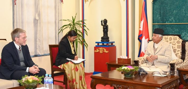 काठमाडौं । नेपालका लागि अमेरिकी राजदूत डीन आर थम्पसनले राष्ट्रपति रामचन्द्र पौडेलसमक्ष बिदाइ भेट गरेका छन् । बिहीबार शीतल निवासमा उनले राष्ट्रपति पौडेलसँग बिदाइ भेट गरेका हुन् ।
