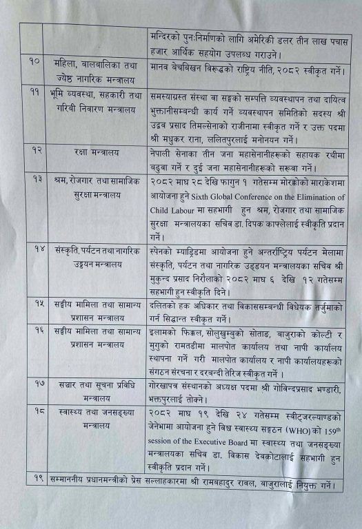 काठमाडौँ। सरकारले मन्त्रिपरिषद् बैठकका निर्णय सार्वजनिक गरेको छ । मंगलबार सरकारका प्रवक्ता एवम् सञ्चार तथा सूचना प्रविधि मन्त्री जगदीश खरेलले पत्रकार सम्मेलन गर्दै मन्त्रिपरिषद् बैठकका निर्णय सार्वजनिक गरेका हुन् । सञ्चार मन्त्री खरेलले पुस २८ गते बसेको मन्त्रिपरिषद्का निर्णय सार्वजनिक गरेका छन् ।