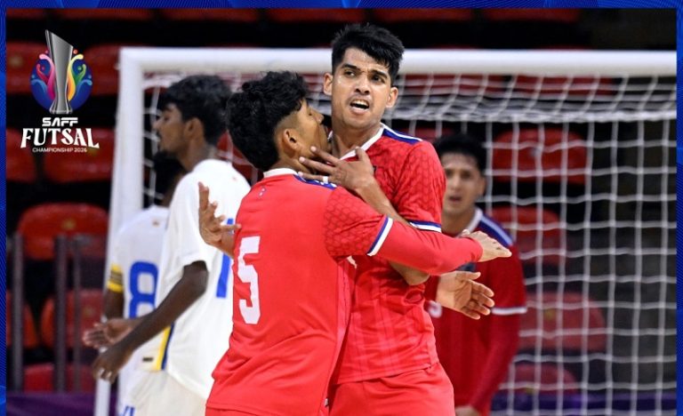 काठमाडौं । साफ फुटसल च्याम्पियनशिपको पुरुषतर्फ नेपालले विजयी शुरुआत गरेको छ । थाइल्यान्डको हुआ मक इनडोर स्टेडियममा आज भएको खेलमा नेपालले श्रीलङ्कालाई २–१ गोलले हरायो । जीतसँगै नेपालले ३ अङ्क जोडेको छ ।