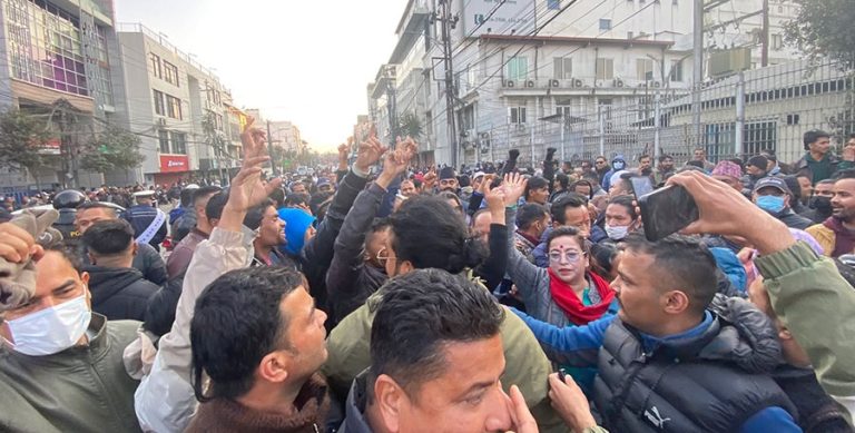 निर्वाचन आयोगबाहिर देउवा र गगन पक्षको बेग्लाबेग्लै नाराबाजी