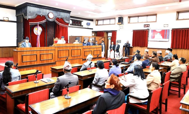 काठमाडाैं । राष्ट्रियसभाको १९औँ अधिवेशनको पहिलो बैठक सकिएको छ । मन्त्रिपरिषद्को सिफारिसमा राष्ट्रपतिबाट आह्वान भई आजका लागि बोलाइएको बैठक कांग्रेस सांसद बलदेव बोहराप्रति शोकप्रस्ताव पारित गर्दै सकिएको हो ।